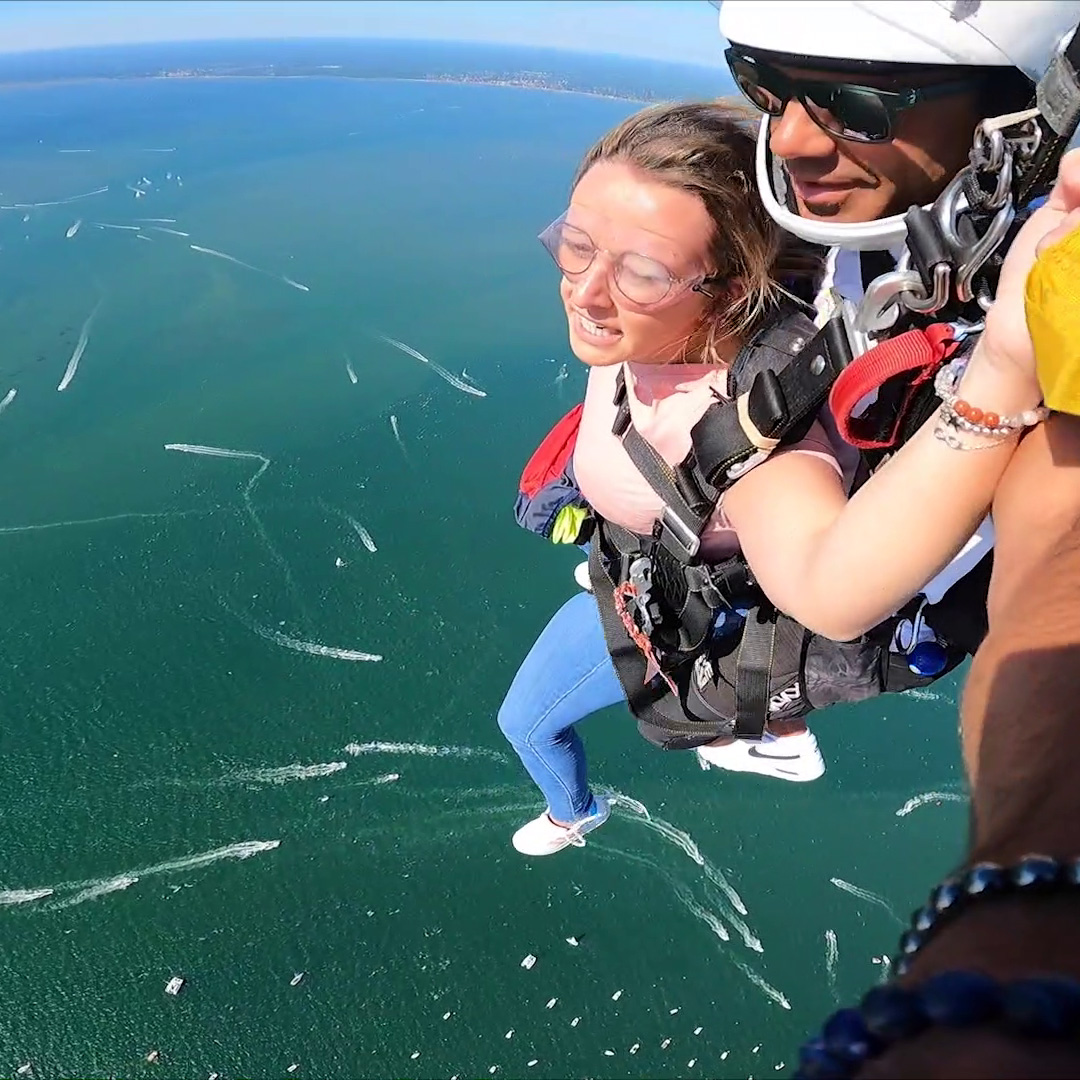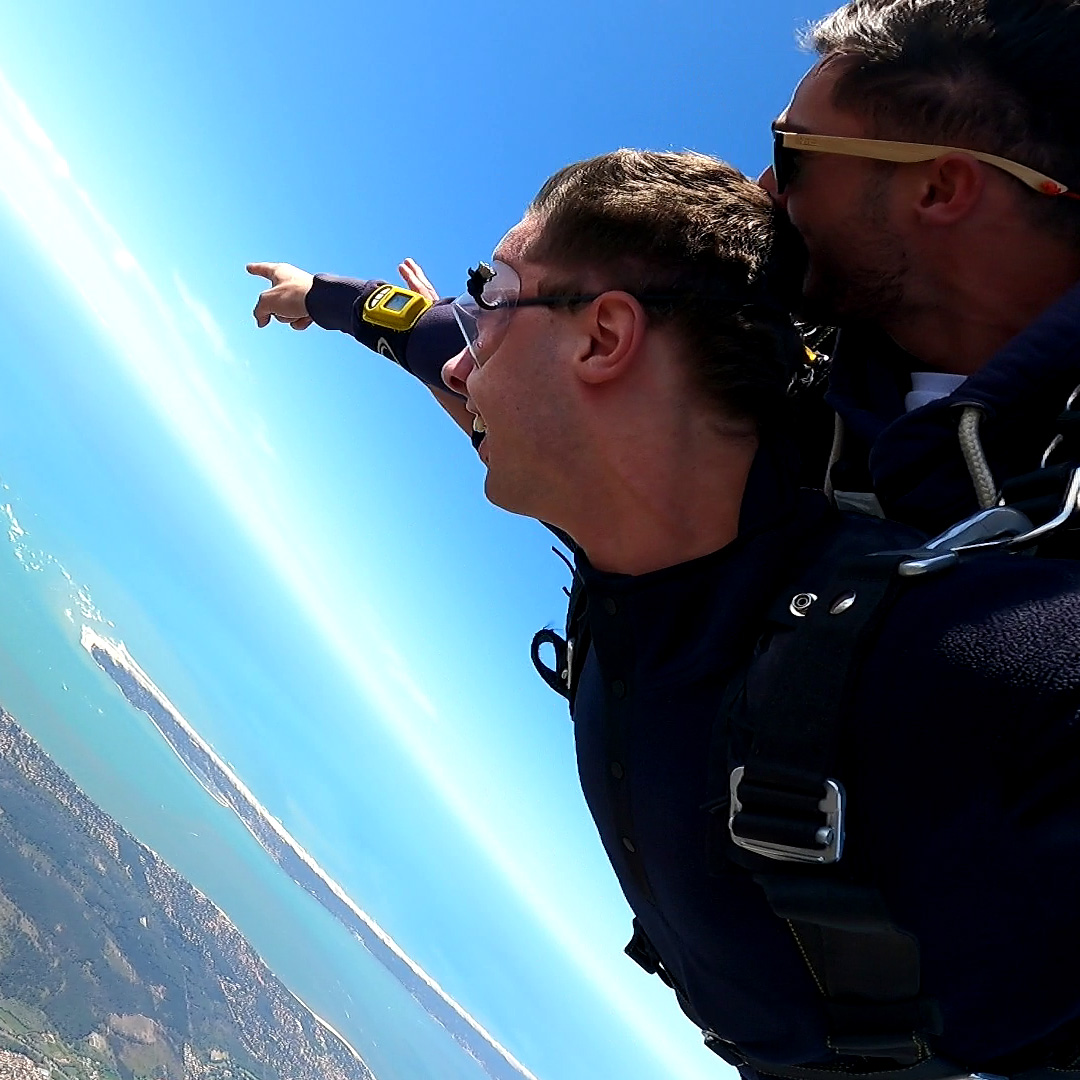 La vidéo est faite à partir de la caméra qui est fixée sur la main de votre moniteur en mode selfie. Il réalisera différents plans tout au long de votre aventure avec : une séquence de présentation au sol, à l’embarquement, plusieurs séquences dans l’avion, votre chute libre, vos sensations sous-voile et l’atterrissage.