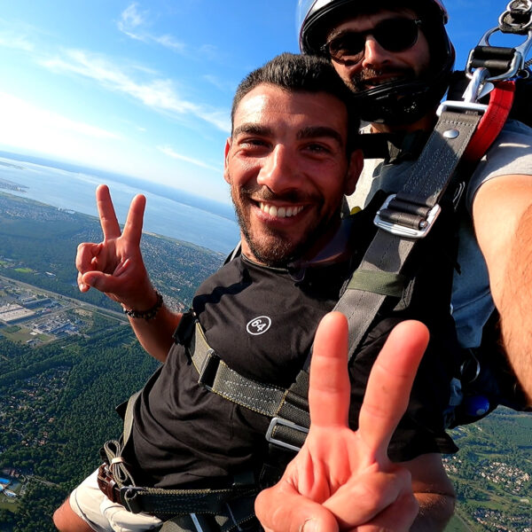 Votre moniteur vous filmera tout au long de l’aventure : présentation au sol, à l’embarquement, dans l’avion, votre chute libre, vos sensations sous-voile et l’atterrissage. Les plans seront tournés à partir de la caméra qui est fixée à son poignet en mode selfie. Vous aurez un film souvenir, monté en musique, d’environ 5 à 7 min.
