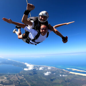 Le saut en parachute tandem vous permet de découvrir les sensations incroyables de la chute libre en toute sécurité et sans contraintes. C’est un de nos moniteurs qualifié et expérimenté qui s’occupera de tout ! Vous serez relié à lui par un harnais et vous effectuerez le saut ensemble, avec une seule voile pour vous deux. Vous n’aurez qu’à vous laisser guider et profiter du panorama exceptionnel qu’offre le Bassin d’Arcachon.